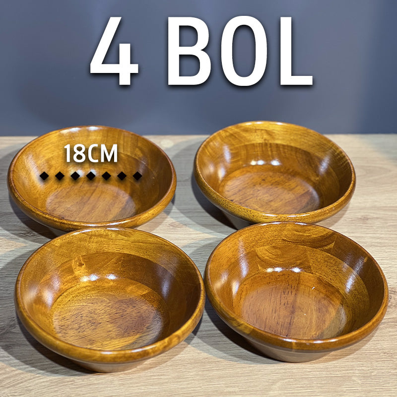 🥄 4 صحون خشبية متعددة الاستعمالات (سلطة، شربة، حلويات...)