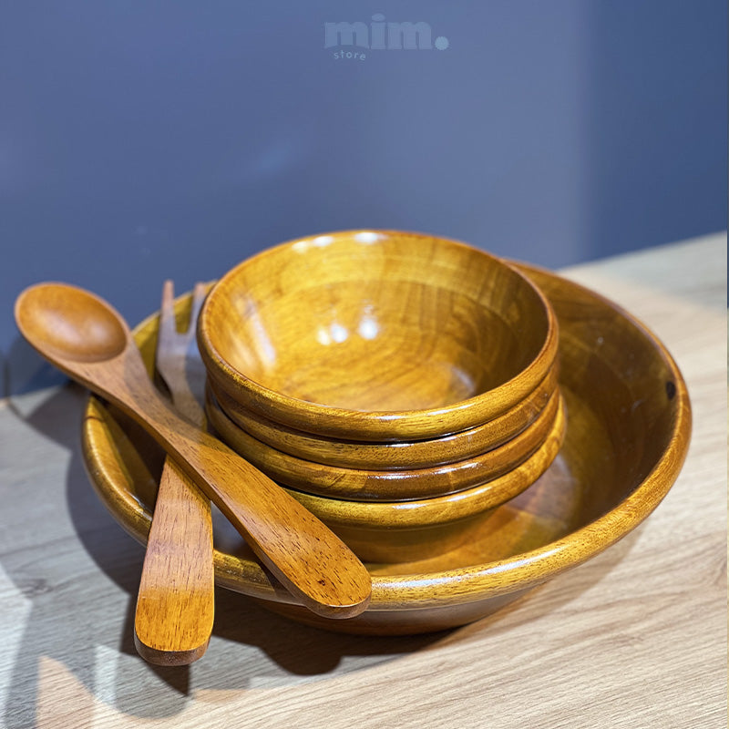 ✨ أضيفي لمسة من الطبيعة والجمال لمائدتك مع هذا الطقم الخشبي الراقي المصنوع يدويًا من أجود أنواع الخشب الفيتنامي.