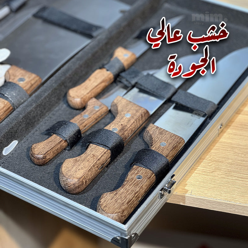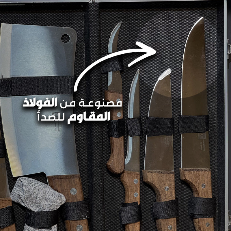 💼 طقم 8 قطع كاملة مع حقيبة فاخرة، مصممة لتسهيل الذبح، التقطيع، والتحضير بكل احترافية.