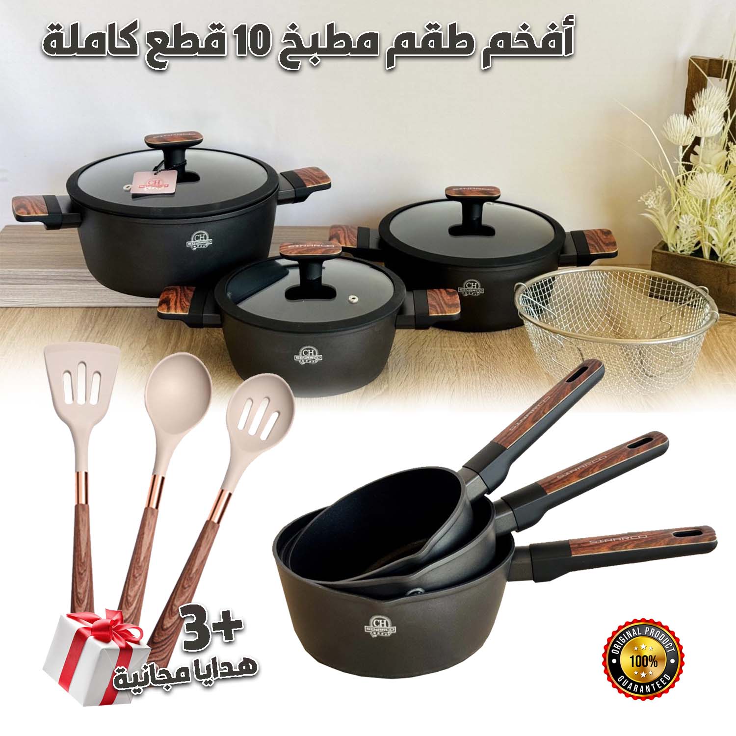 ✔️ هدية مجانية: طقم ملاعق سيليكون (3 قطع) لتسهيل عملية الطهي بأناقة.