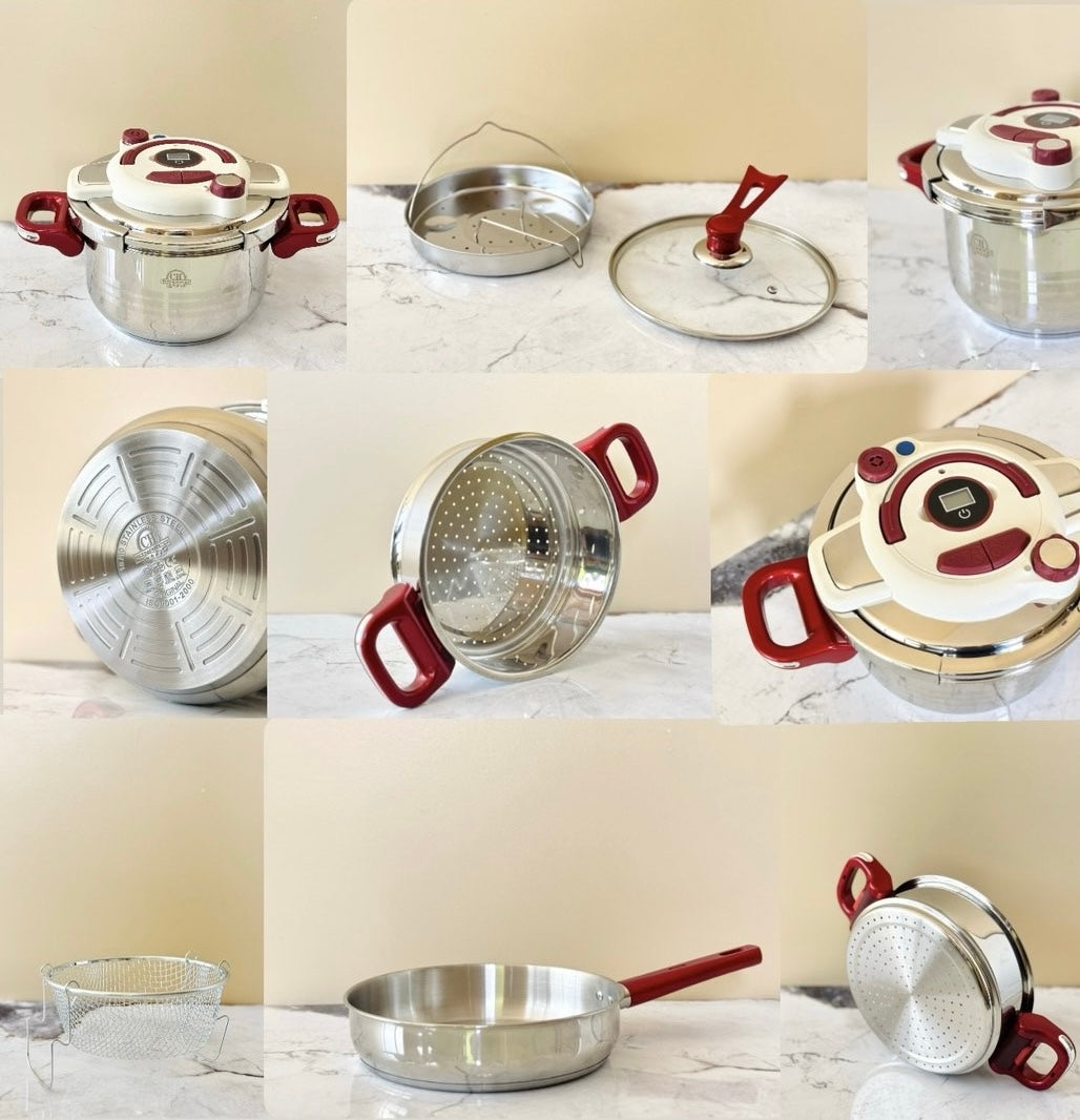 طقم طناجر الضغط 10 قطع من الستانلس ستيل 18/10 – جودة وأمان في مطبخك!